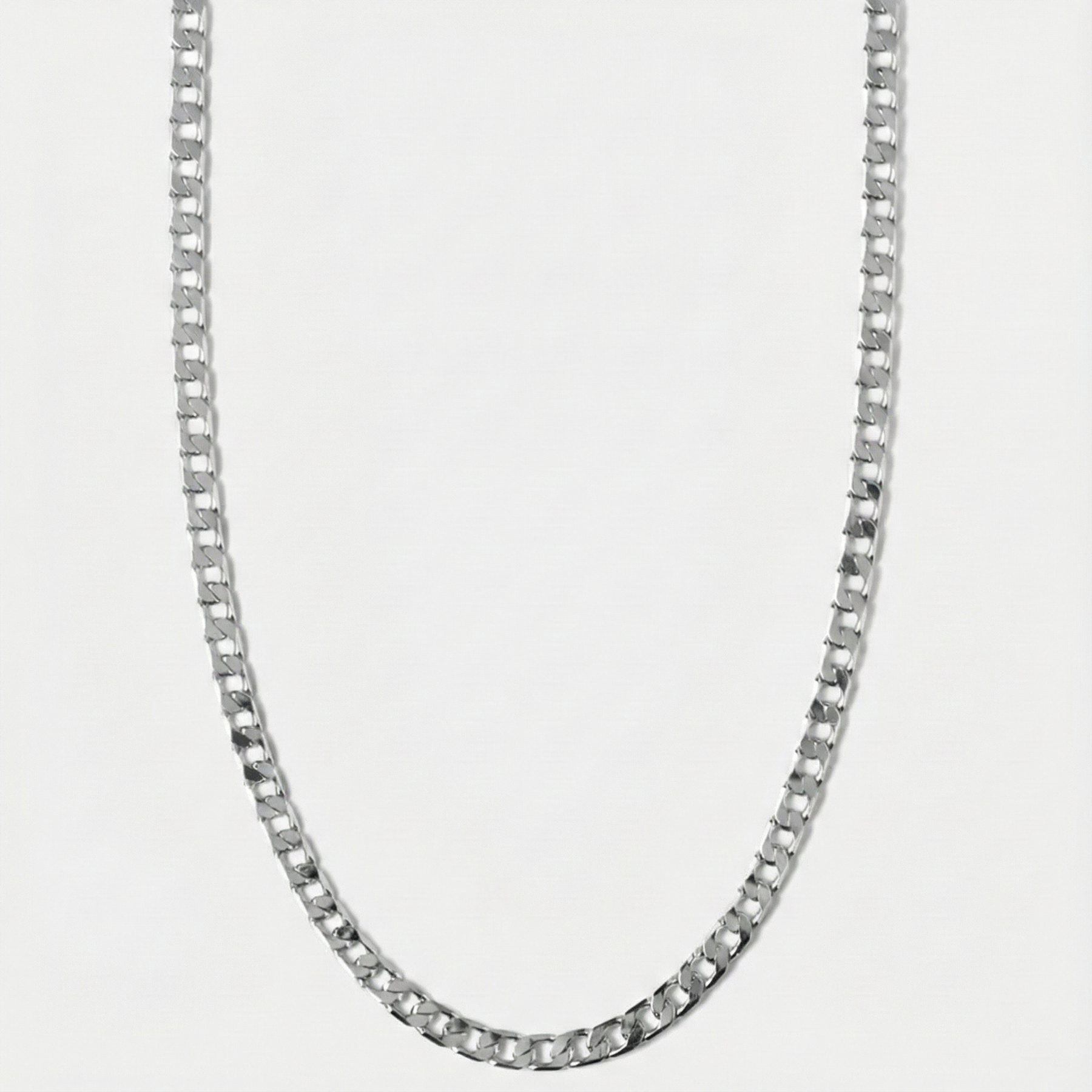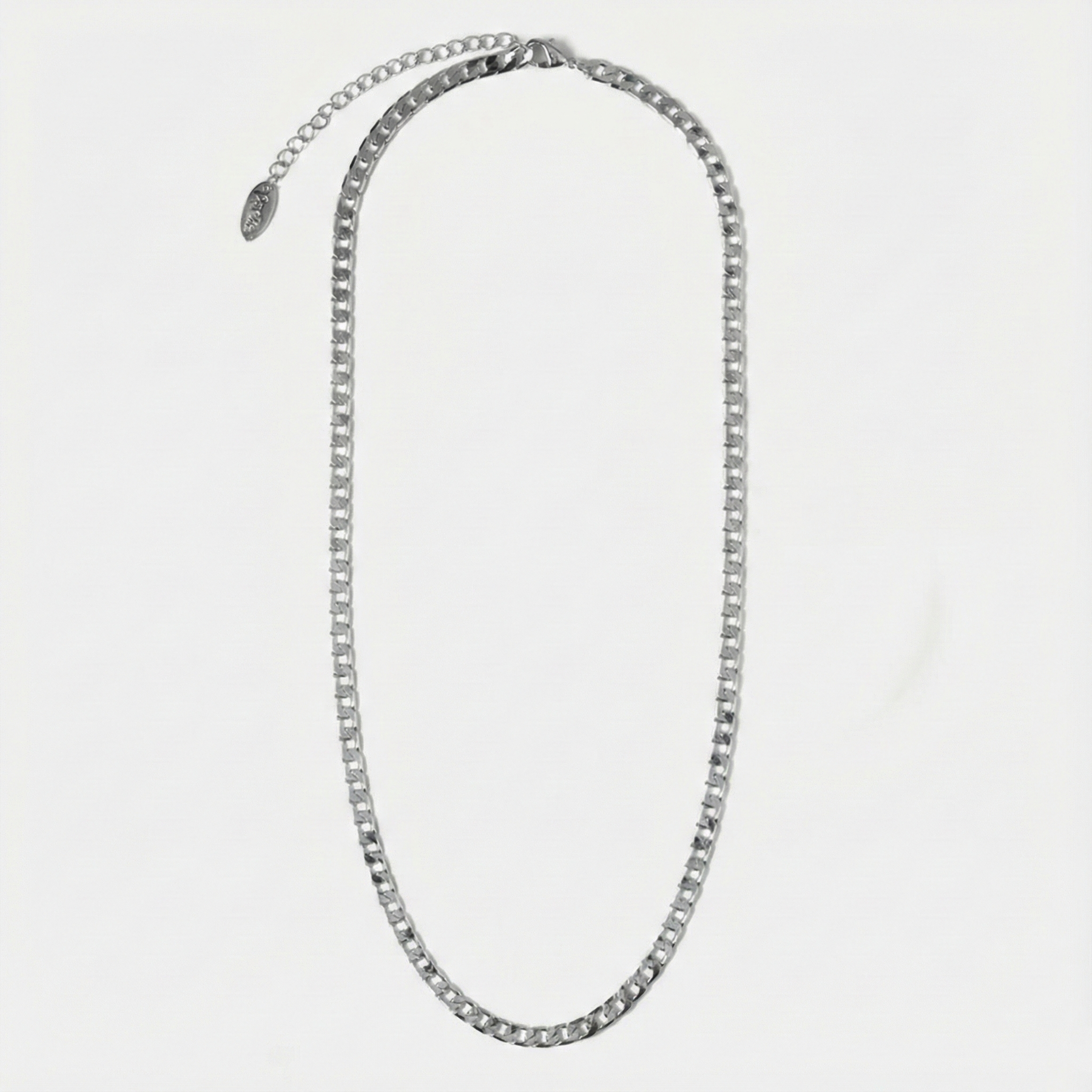 Náhrdelník s plochými článkami má hladké a prepletené články s oslnivým leskom. Je odolný, ale rafinovaný, čo z neho robí všestranný doplnok, ktorý sa dá nosiť samostatne alebo v kombinácii s inými šperkami.