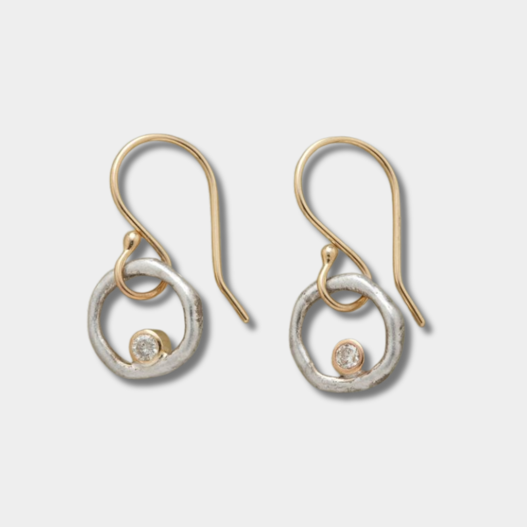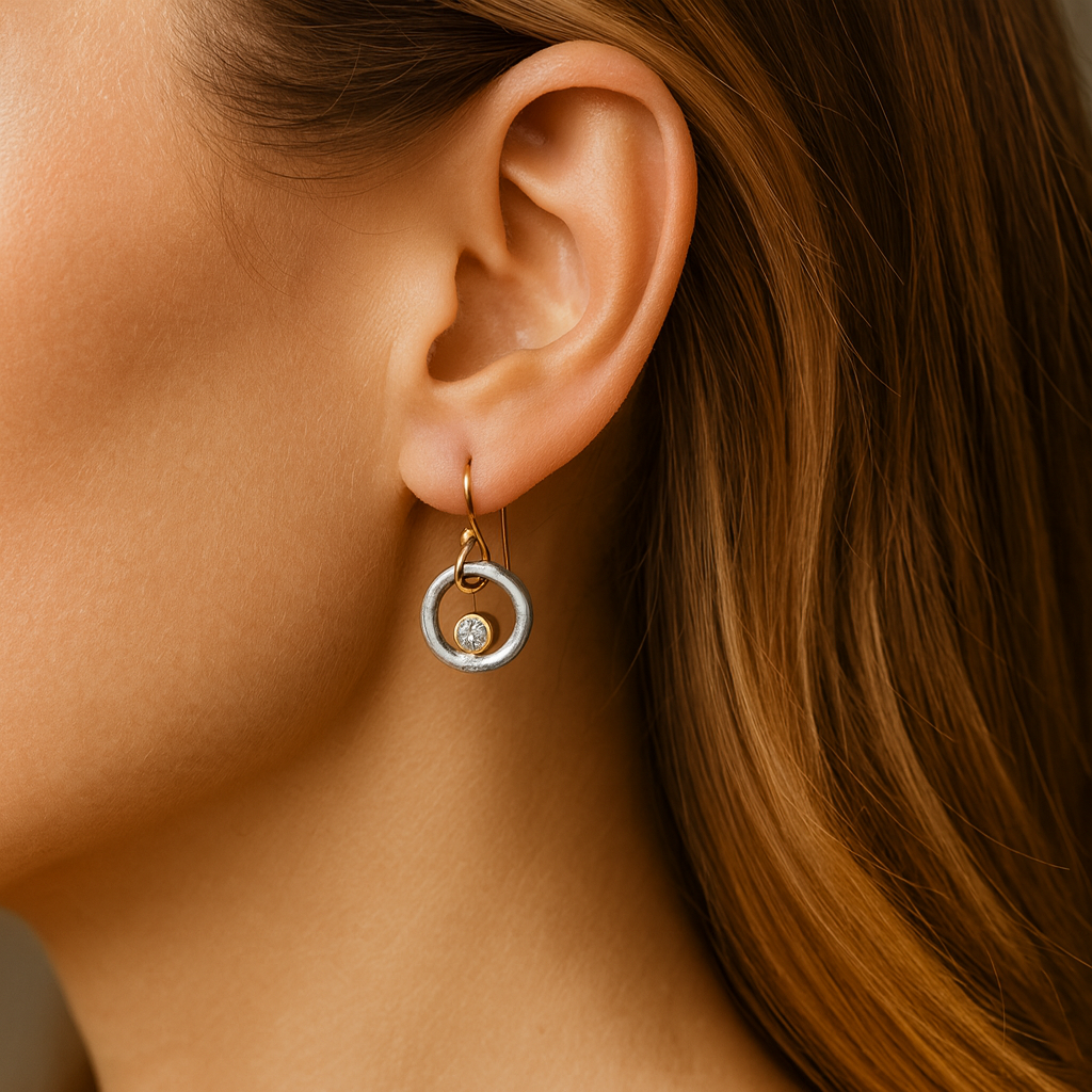 Jemné línie v zlate, mäkké kruhy v striebre.