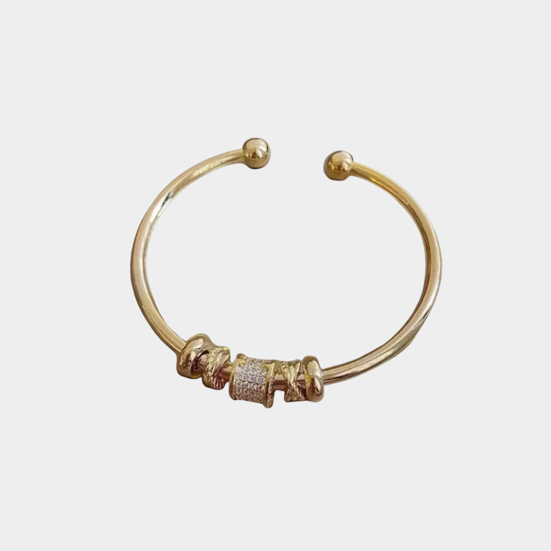 • Dizajn: Otvorený, nastaviteľný náramok s viacerými štruktúrovanými charm-y