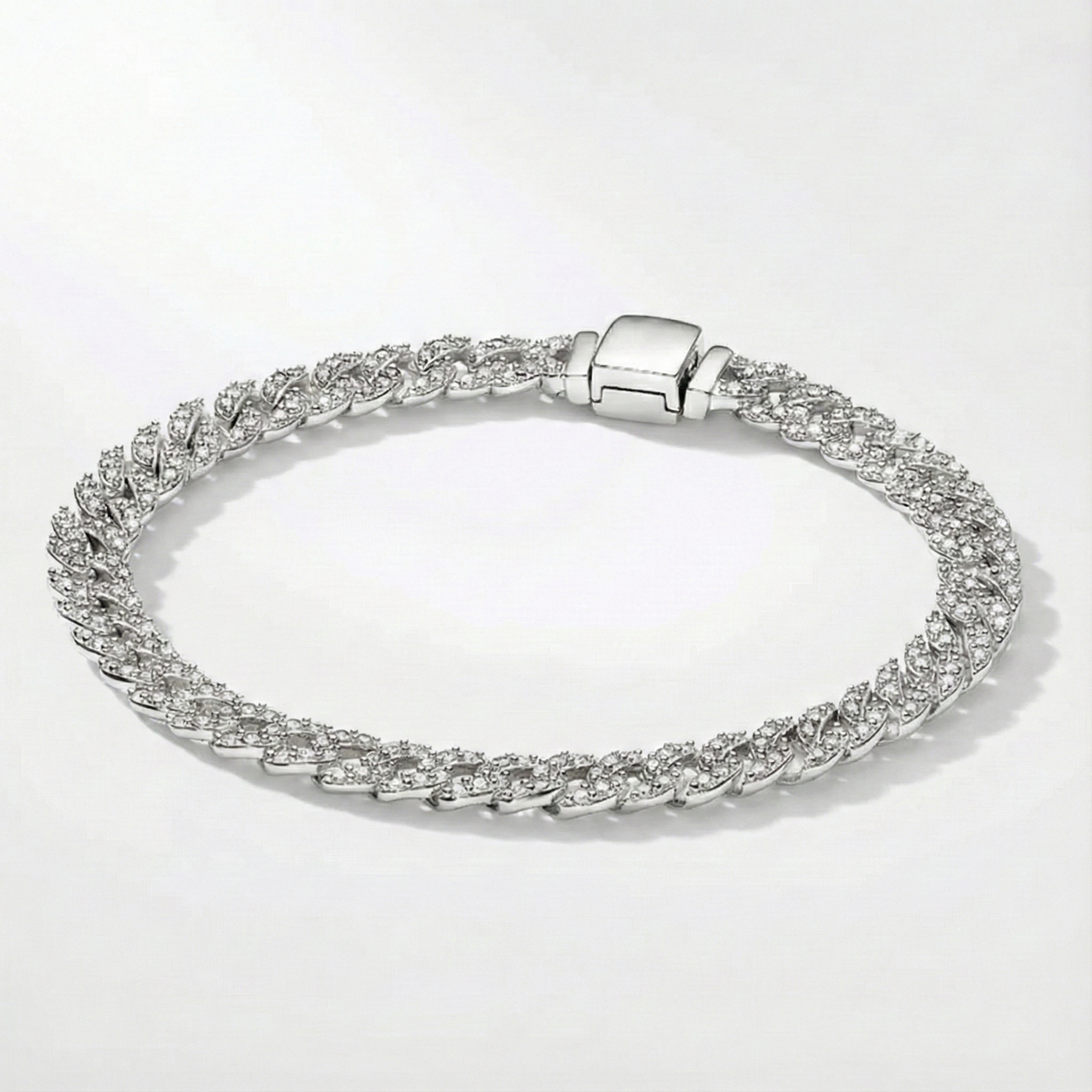 Kubánsky náramok s moissanitom kombinuje elegantný lesk s žiarivou brilantnosťou moissanitových kameňov. Pevný, ale rafinovaný, je to šperk, ktorý harmonicky spája silu a eleganciu.