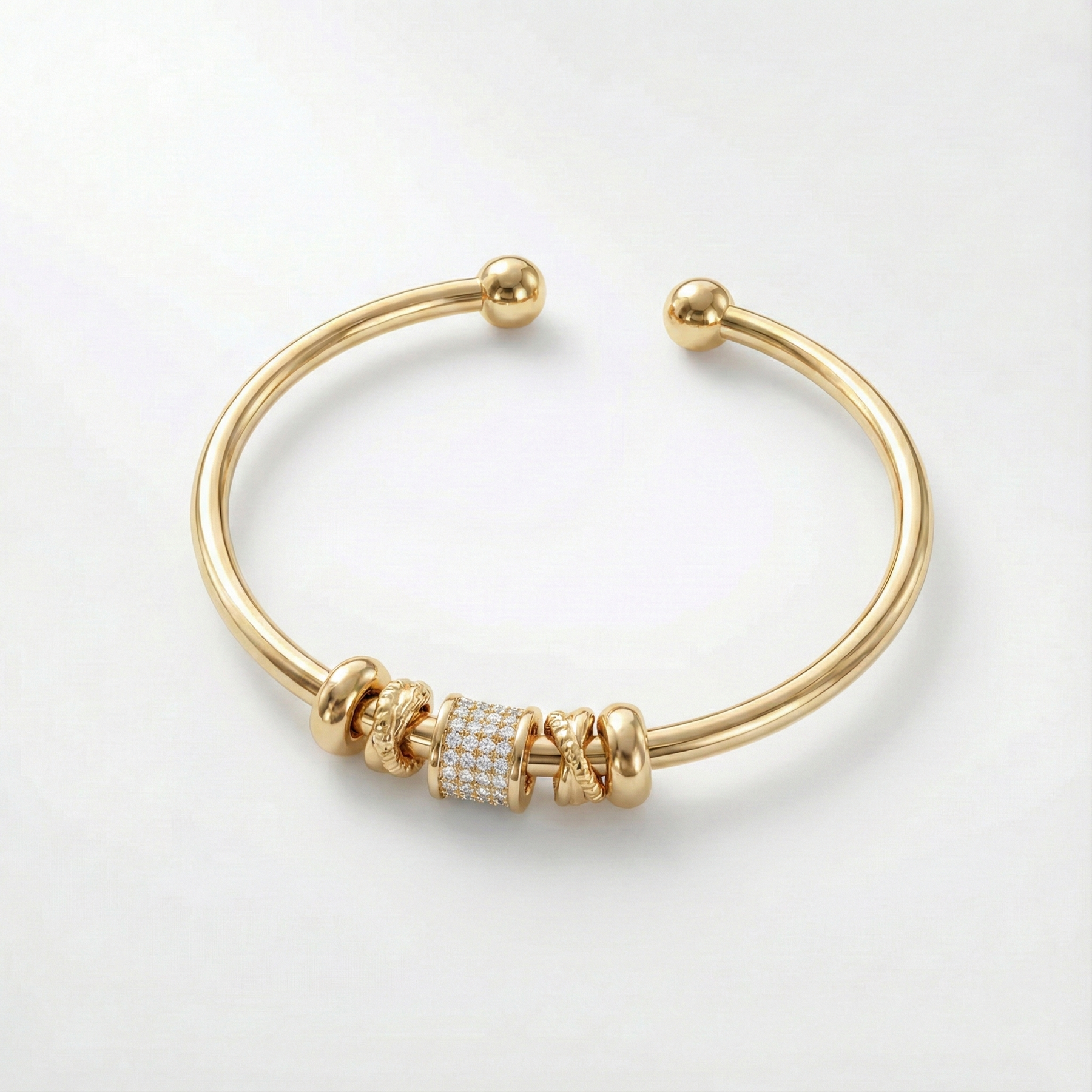 Nina spája modernú eleganciu s nádychom hravej rafinovanosti. Otvorený a nastaviteľný dizajn sa jemne prispôsobí akémukoľvek zápästiu, zatiaľ čo filigránové prívesky jemne žiaria pri každom pohybe. Minimalistický šperk s veľkým dopadom: nádherný, nadčasový a absolútne všestranný.